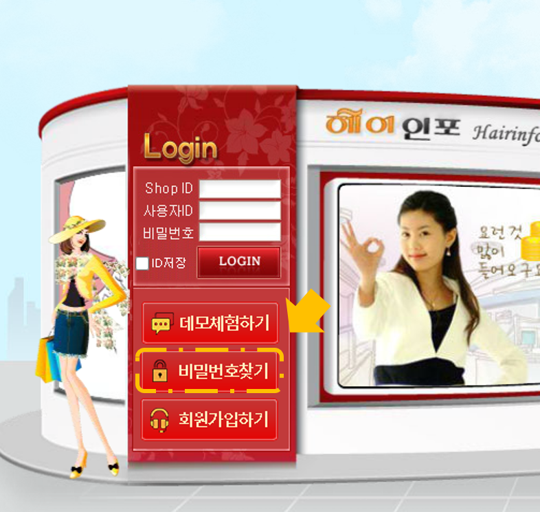 비밀번호 찾기 원할 시 이용 부탁드립니다.